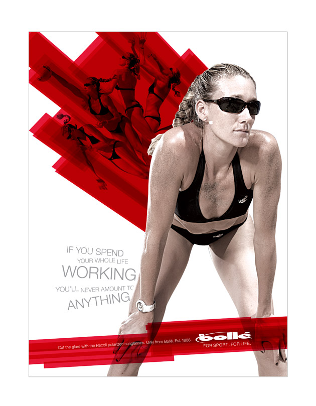 Any sports retailer can encourage you to live your life to the fullest, but in the real world, we have to work for a living. In an effort to connect with ordinary people, these Bollé posters celebrate those precious moments between Friday and Monday by pairing iconic sport figures with some very down-to-earth messaging.