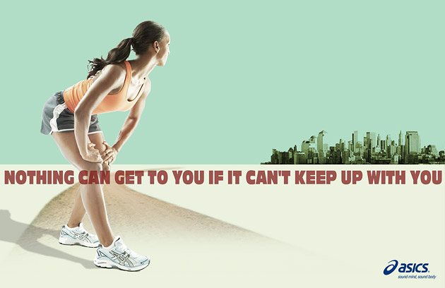 Under the umbrella tagline “Sound Mind, Sound Body,” the Asics running shoe brand has long been positioned as a launch pad for positive energy. In other words, running makes you feel better. These brand print ads were designed to captivate and inspire runners of all skill levels with thoughtful, uplifting headlines and a bold, graphic look.