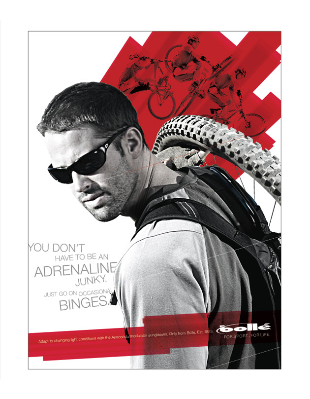 Any sports retailer can encourage you to live your life to the fullest, but in the real world, we have to work for a living. In an effort to connect with ordinary people, these Bollé posters celebrate those precious moments between Friday and Monday by pairing iconic sport figures with some very down-to-earth messaging.